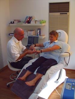 Dabei soll herausgefunden werden, wie das Wasser auf verschiedene Menschen wirkt. An Hand der anstehenden Bilder können sie sehen wie Gesundheitsberater Detlef Härtig aus Kassel die Meridianmessung vornimmt und im letzten Bild das Messergebnis erläutert. Nach Beendigung der Water Evolution Trinkkur, wurde wieder eine Merdianmessung durchgeführt.